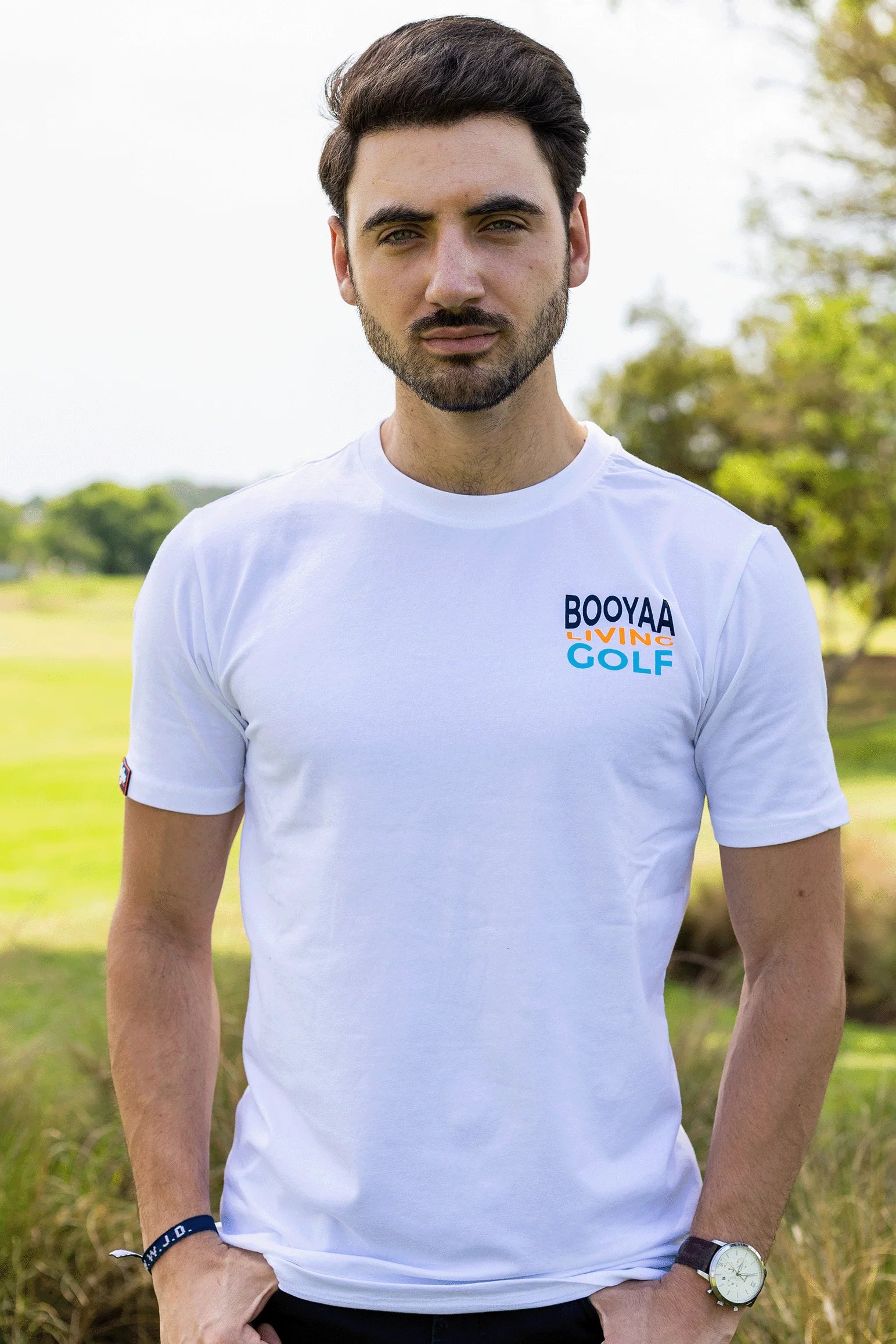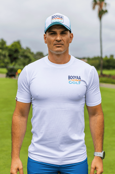 This BooYaa essential brings timeless golf style into your everyday rotation. The multi-color “Living Golf” logo adds a pop of personality to a clean, versatile design. Whether you’re teeing off or meeting friends for sundowners, this shirt always looks fresh.